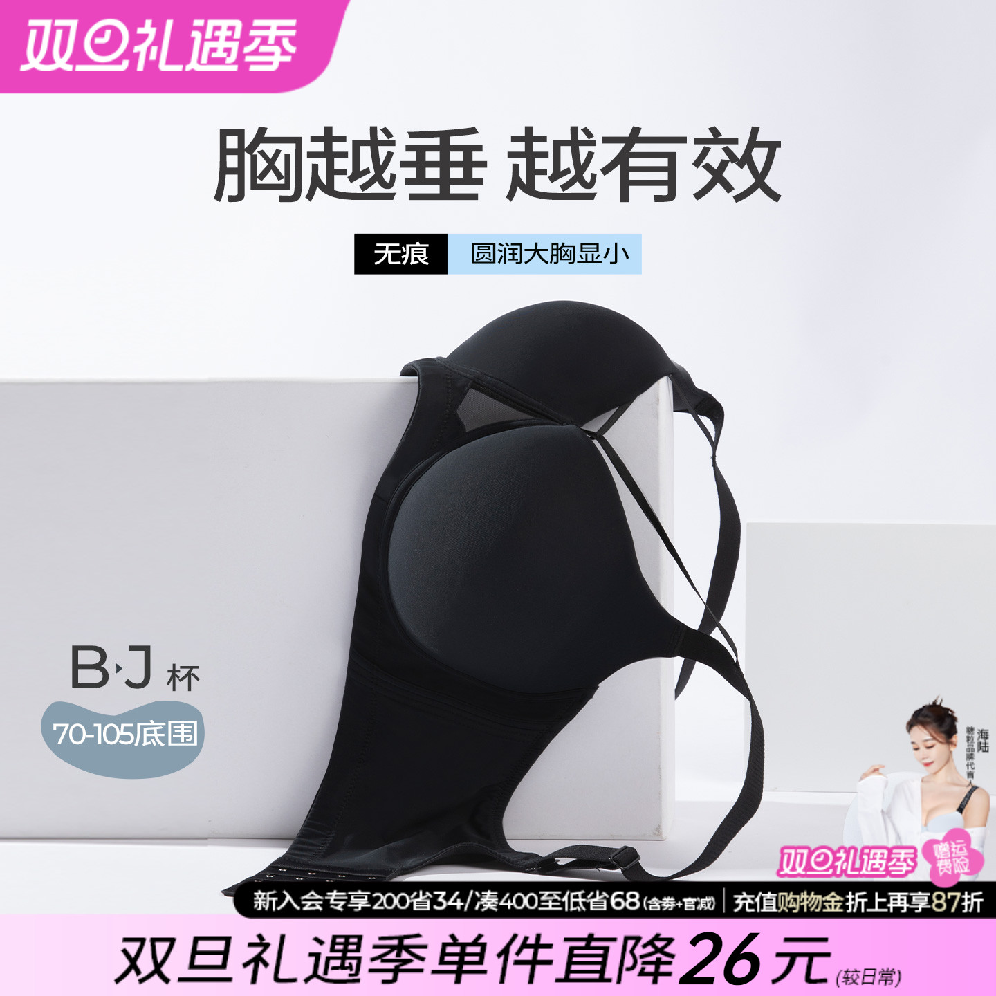 润微提拉内衣女大胸显小无痕防下垂收副乳胸罩爆款隐形粉底液文胸