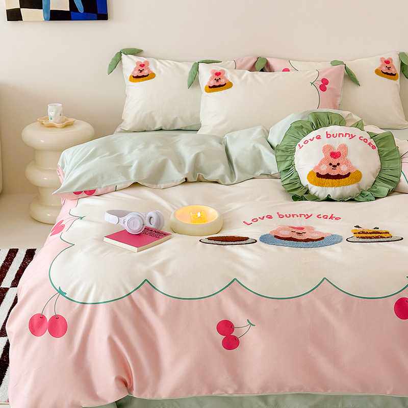 小清新全棉床单四件套纯棉100S长绒棉1.35床笠三件套儿童床上用品