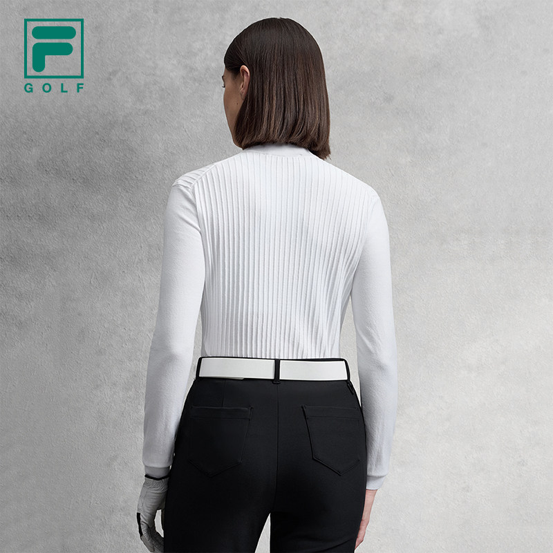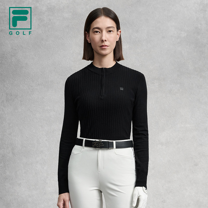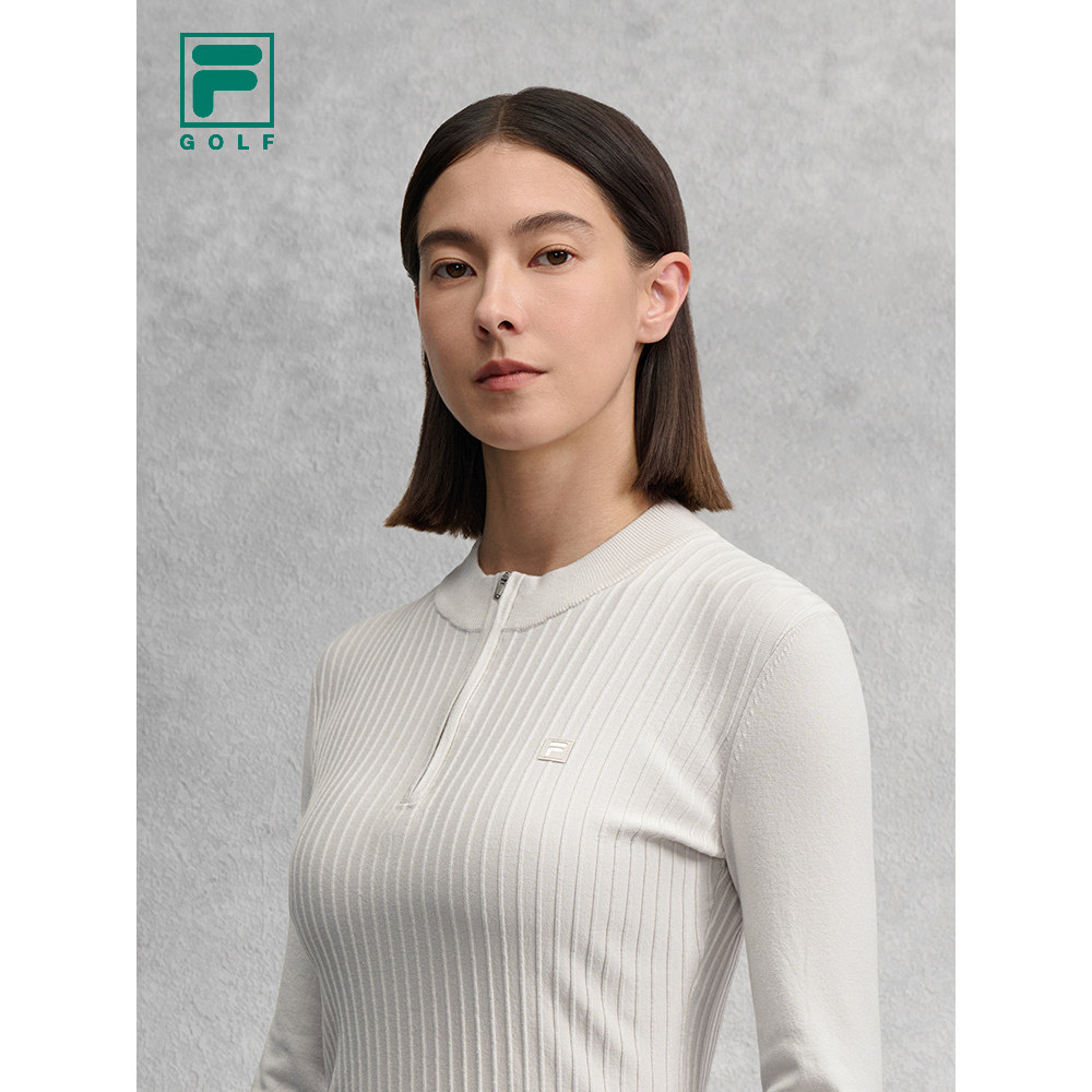 FILA 斐乐官方女编织衫冬季新款高尔夫运动修身半拉链长袖毛衣白