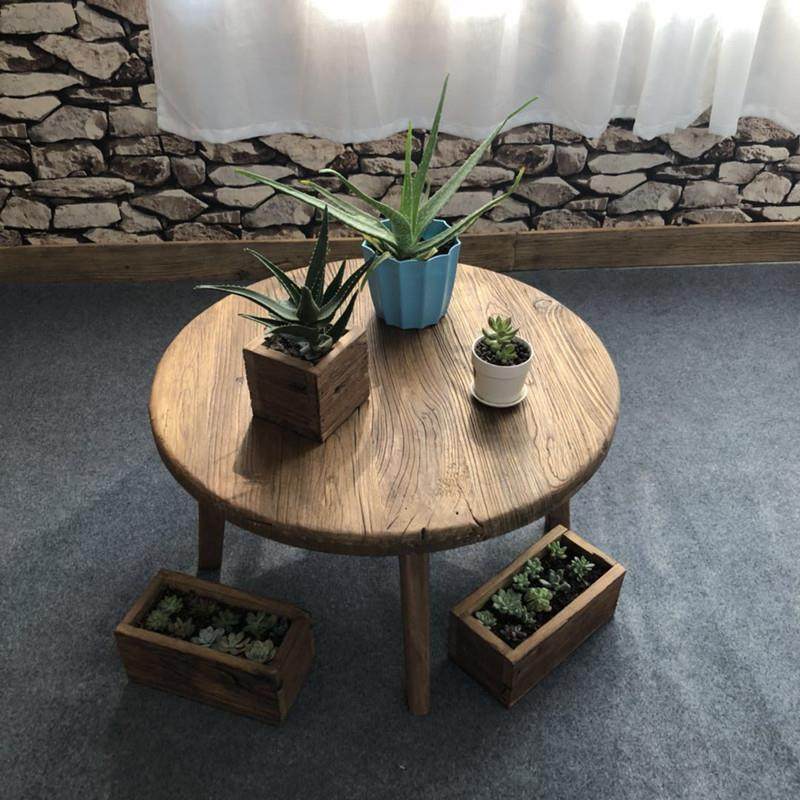 风实木圆桌旧老659围炉门茶桌台榆木榆木茶老木门门板煮板茶矮化