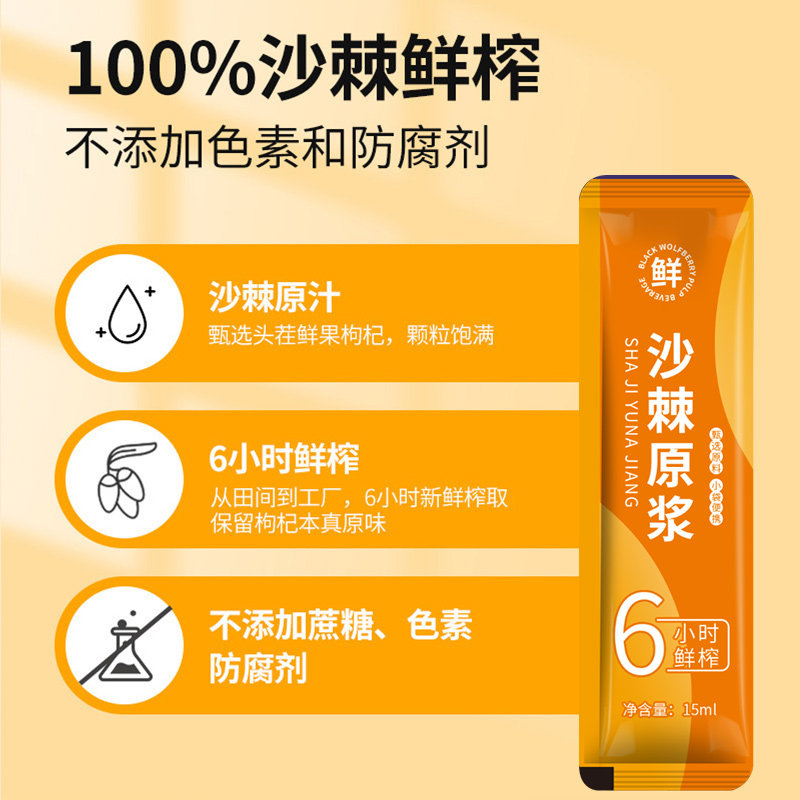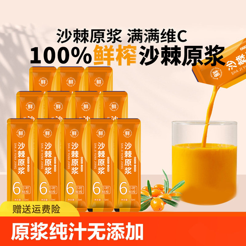 沙棘原浆正品100%纯沙棘果汁原液官方NFC鲜榨血压血脂维生素VC喝