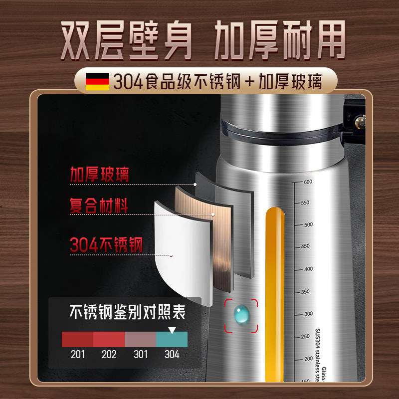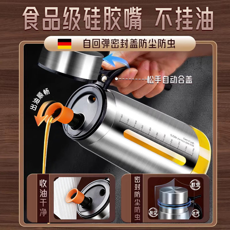 2025新款不锈钢油壶厨房家用不挂油第一名食品级加厚玻璃油瓶油罐