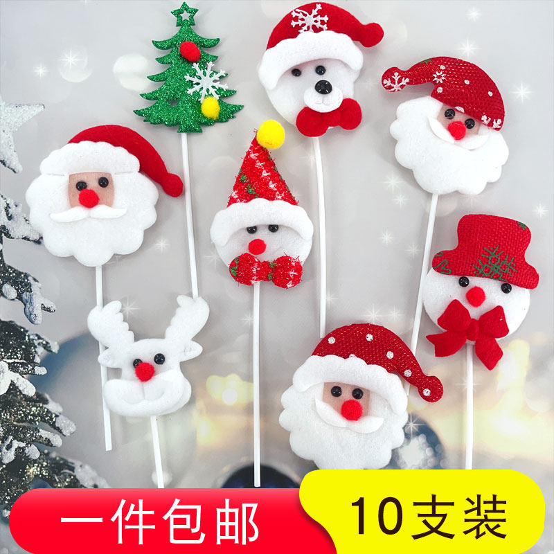 圣诞节布艺装饰插卡圣诞花束配饰创意鲜花包装卡通麋鹿立体老人