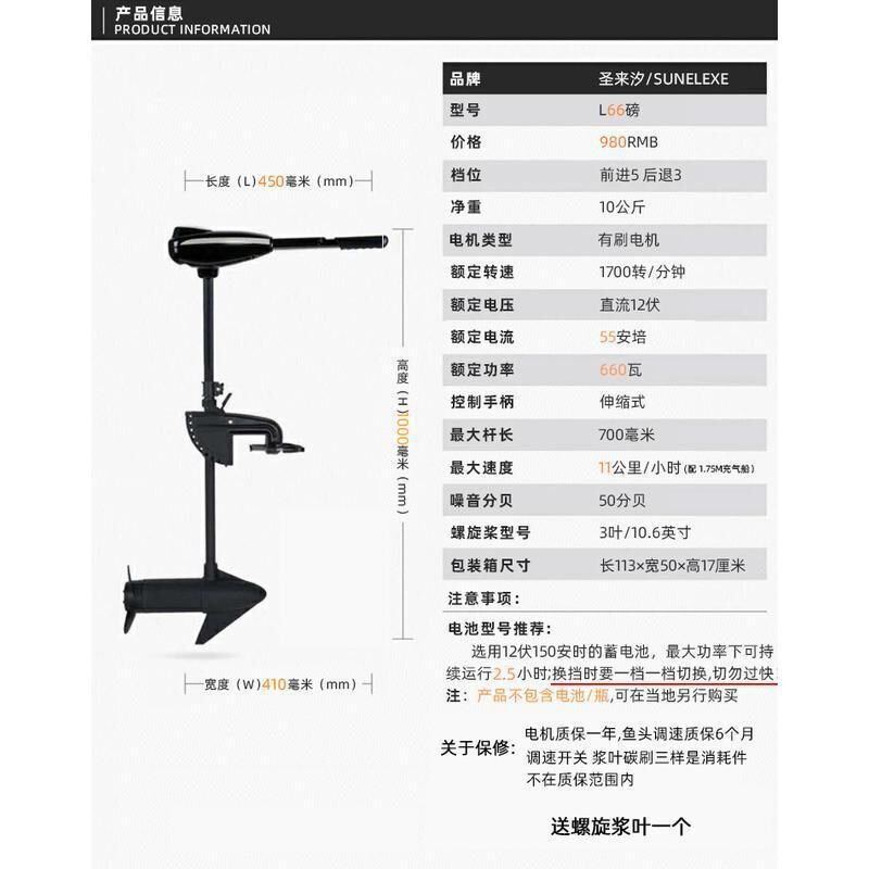 圣来汐船用电动推进器12v无刷橡皮艇马达螺旋桨挂浆小塑料船外机