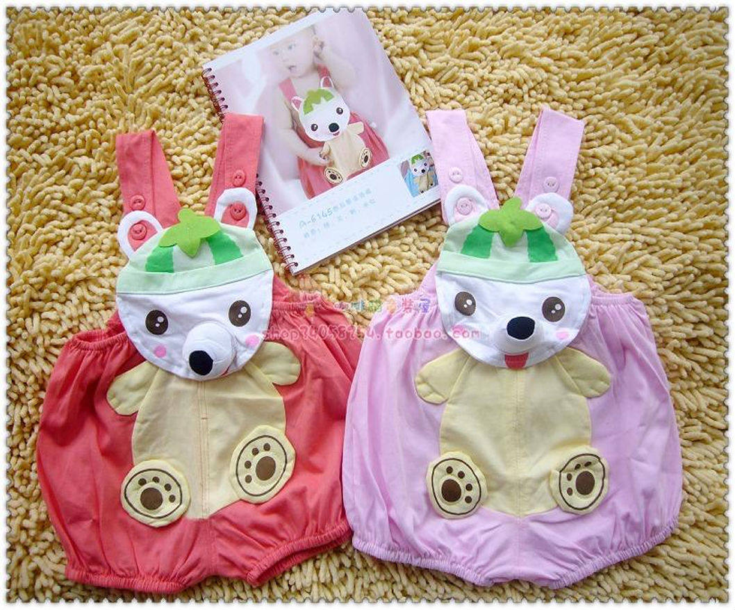 新款夏装 西瓜熊造型衣 宝宝纯棉哈衣 连体衣 婴儿背带裤 包邮