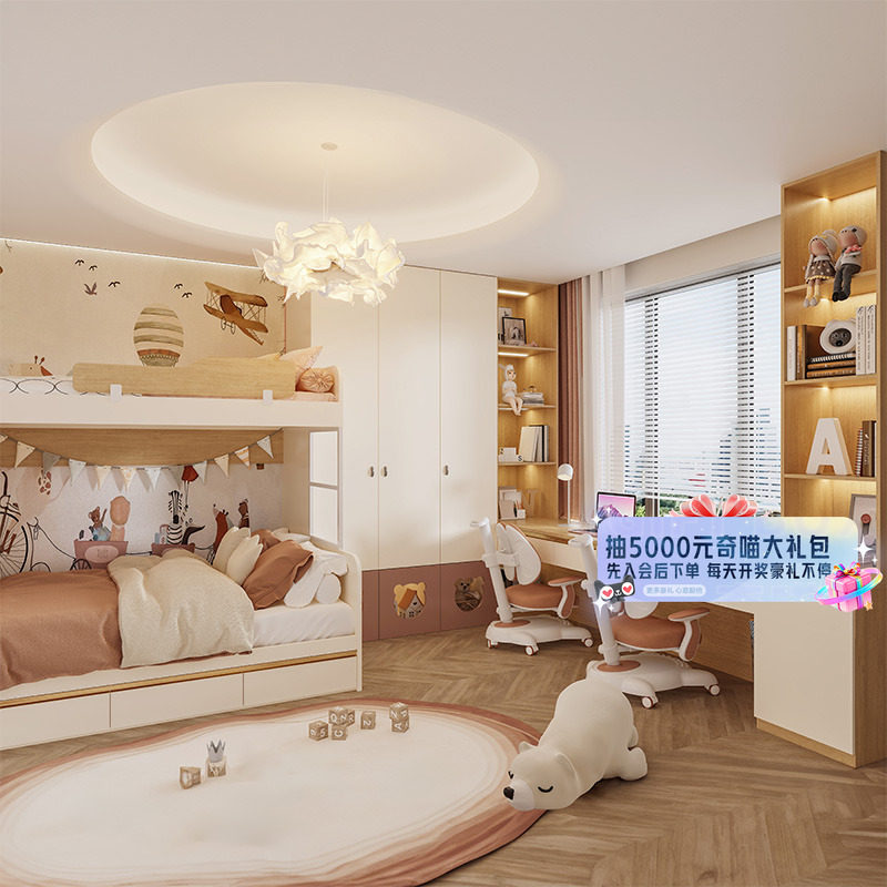 索菲亚儿童房间定制衣柜子母床奶油风高低床上下铺双层床榻榻米