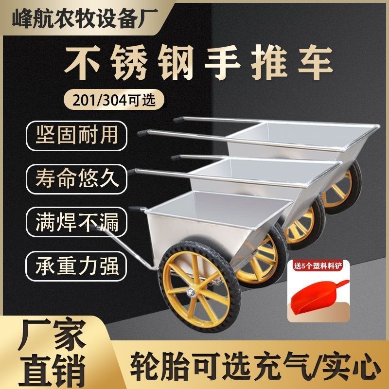 猪场不锈钢料车工地斗车饲料手推车运输车鸡场喂料养殖场专用加厚