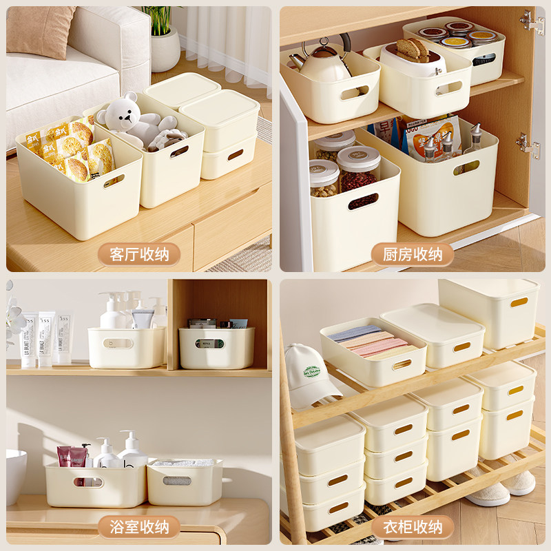 推荐理由:收纳盒家用桌面杂物整理盒塑料带盖收纳箱长方形玩具橱柜收纳筐子