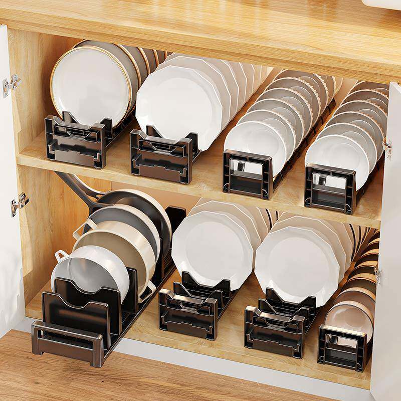 6B76可调节碗碟沥水收纳窄款碗架厨房大碗盘子锅具橱柜抽屉柜内置