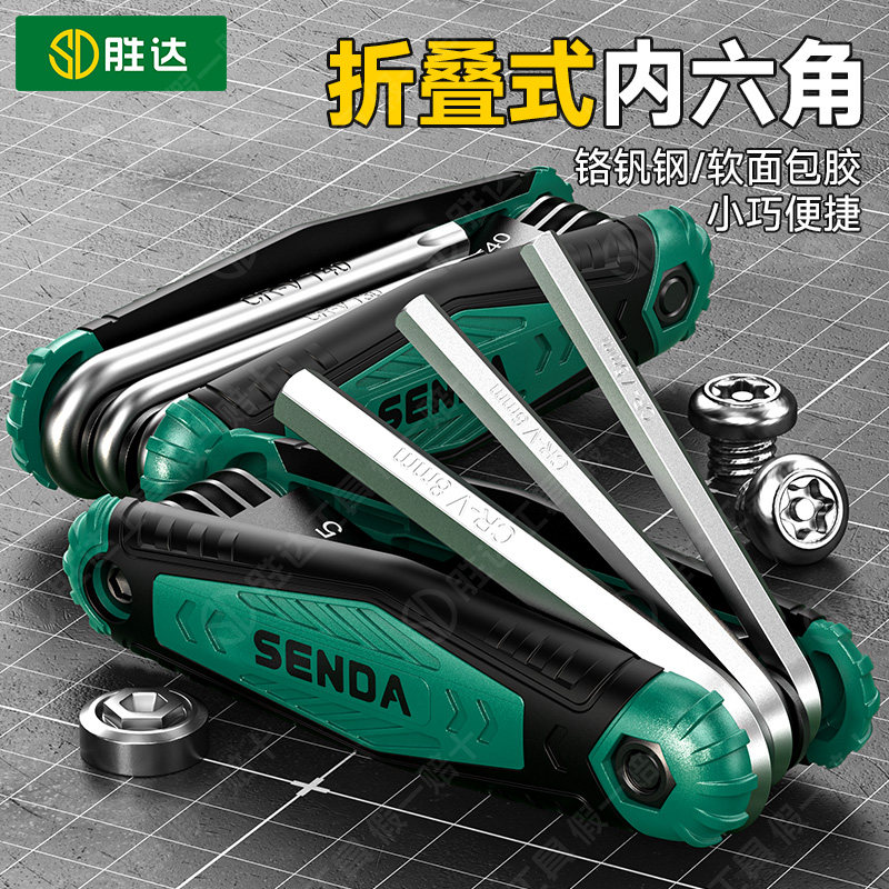 折叠内六角扳手套装公制多功能梅花内六方六角螺丝刀六棱扳手