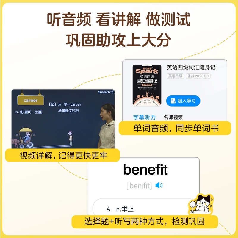 推荐理由:星火英语四级词汇书英语词汇随身记小本口袋书大学cet4四六级高频便携随身记单词书乱序版备考2026年6月考试真题12卷专项阅读