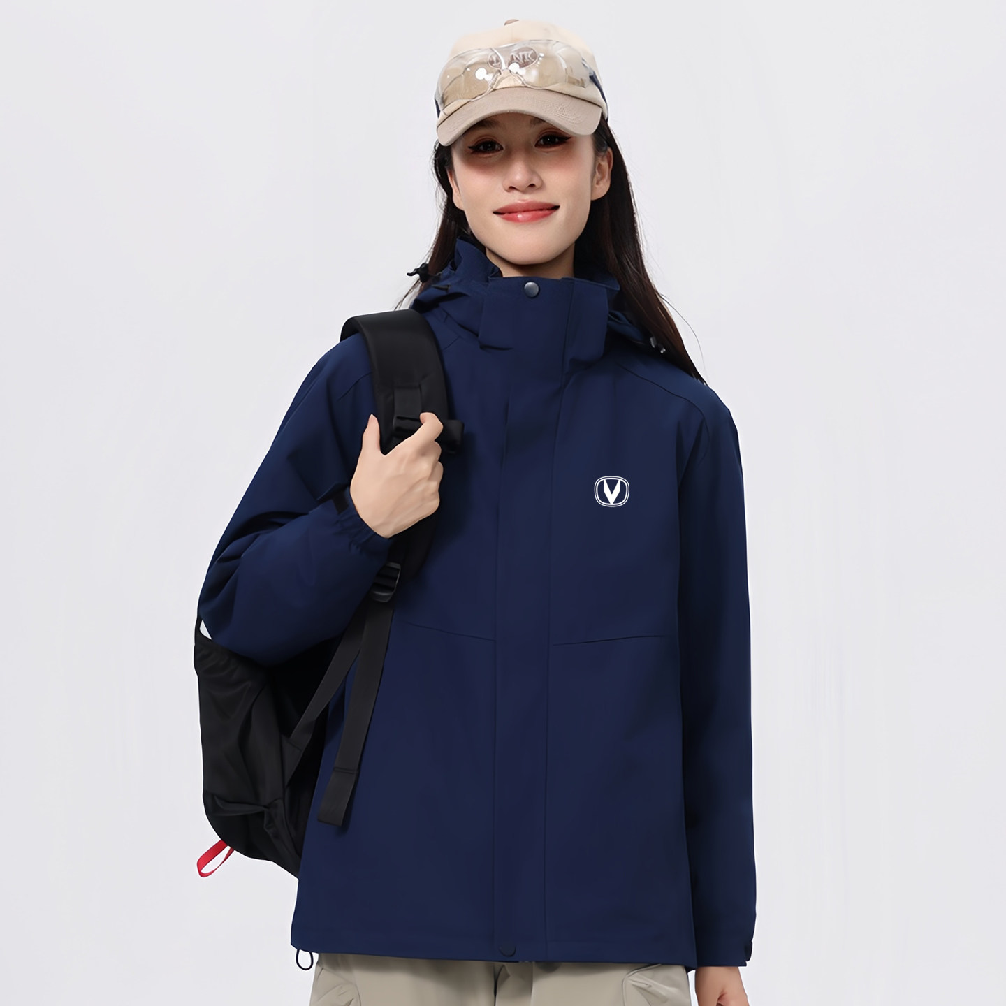 长安汽车冲锋衣4S店工作服定制印字男女员工装夹克藏青色拉链外套