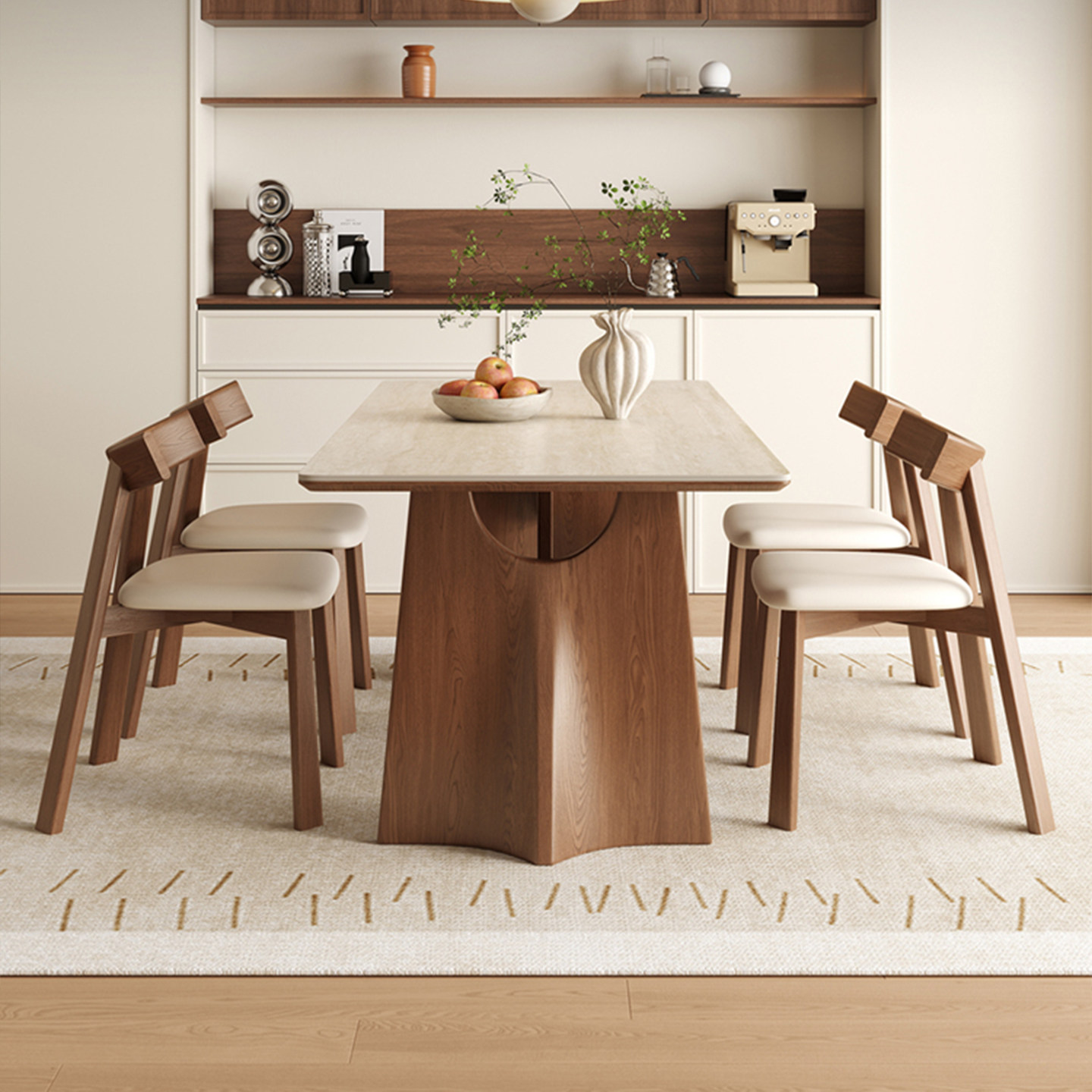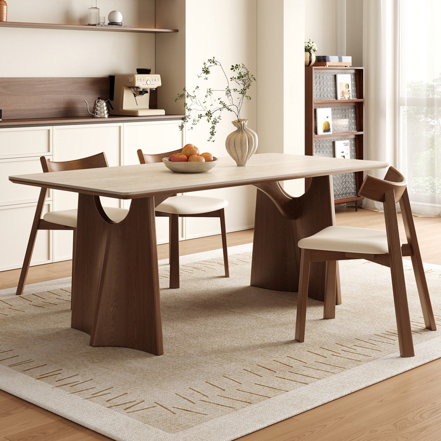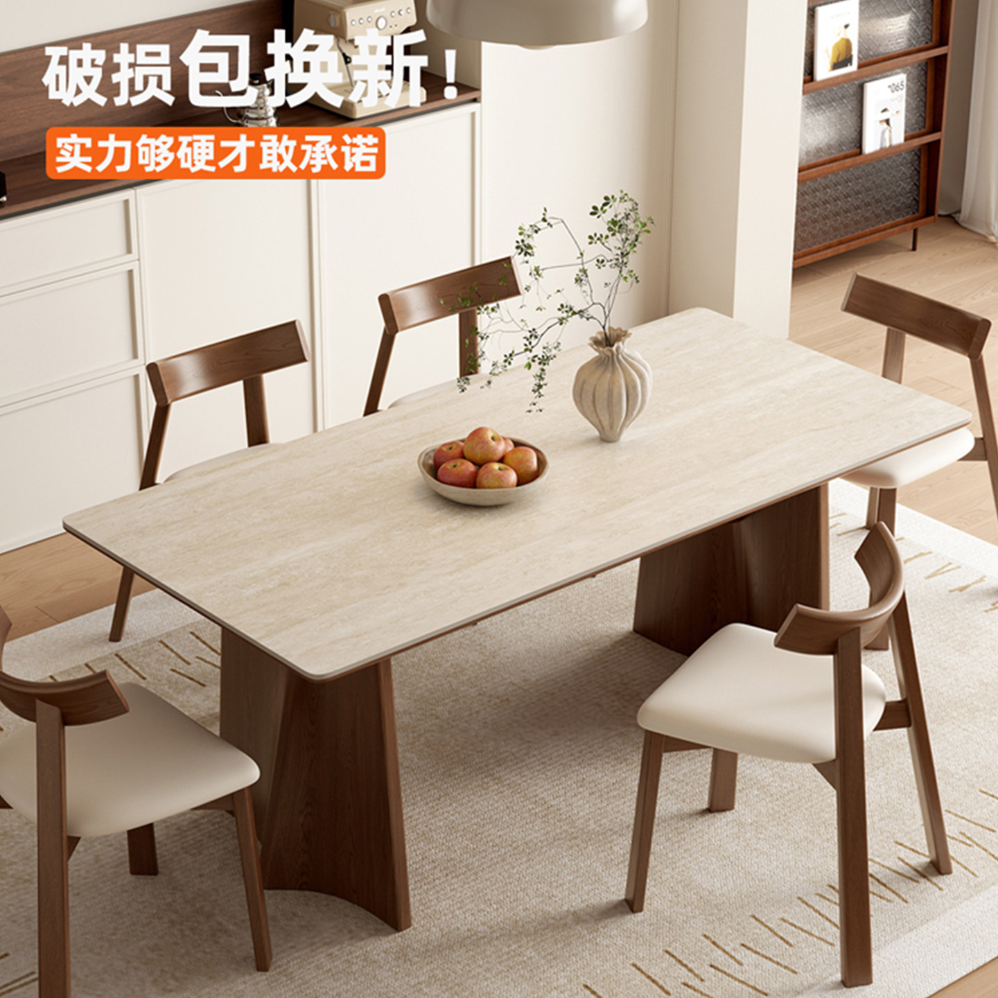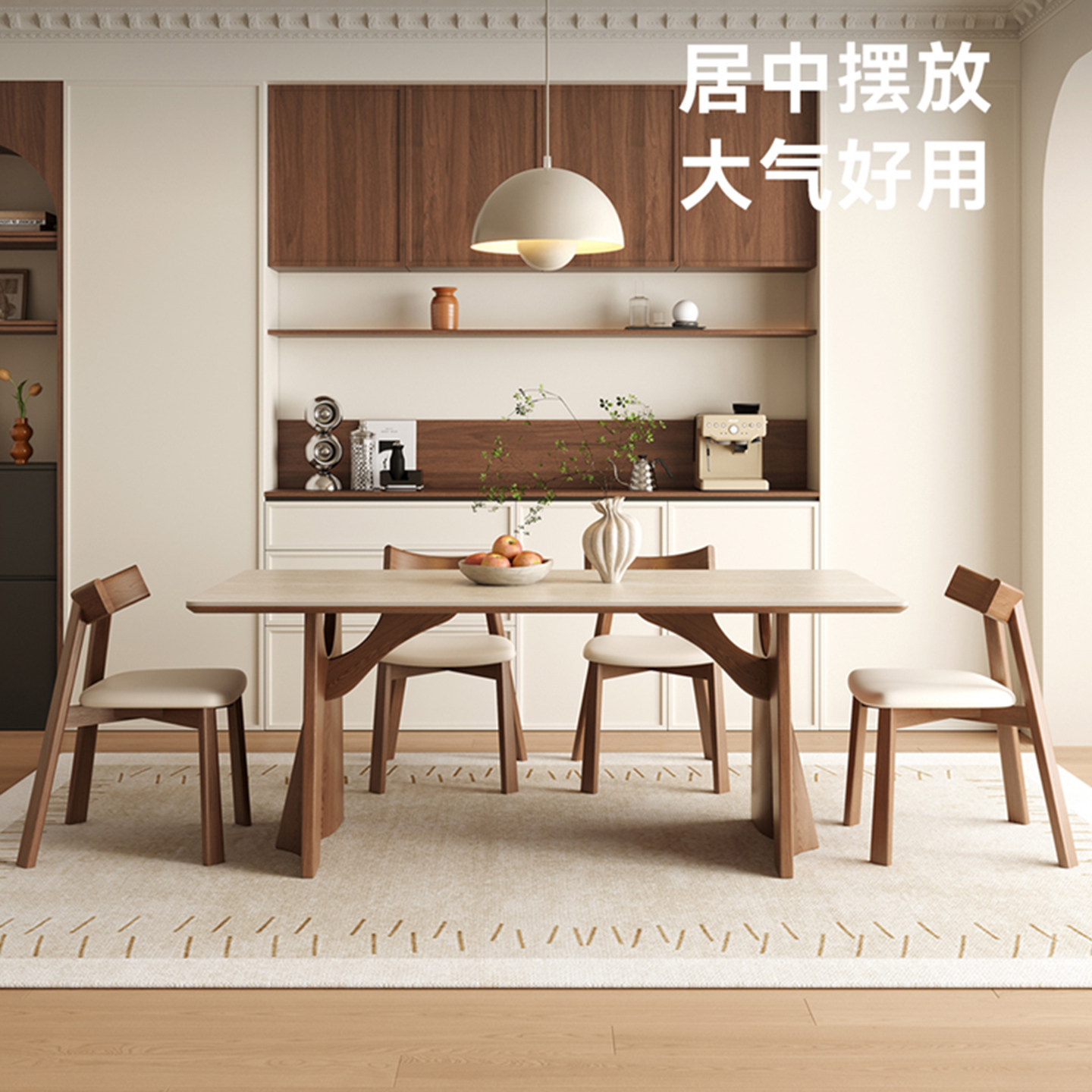 推荐理由:中古风实木岩板餐桌家用小户型2025设计师新款白蜡复古长方形方桌