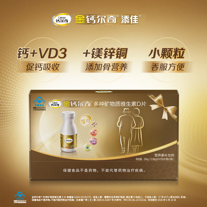 金钙尔奇中老年人钙片碳酸钙d3100片成年男女多种矿物质官网正品