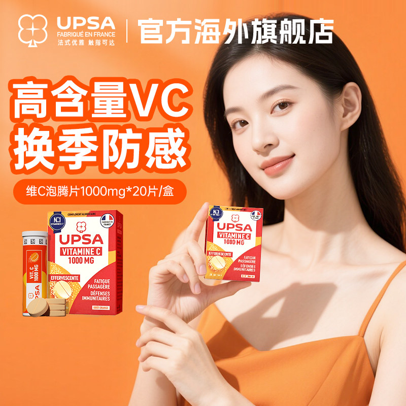 【降温防感】vc法国进口UPSA维生素c泡腾片维C维他命饮品+免疫力