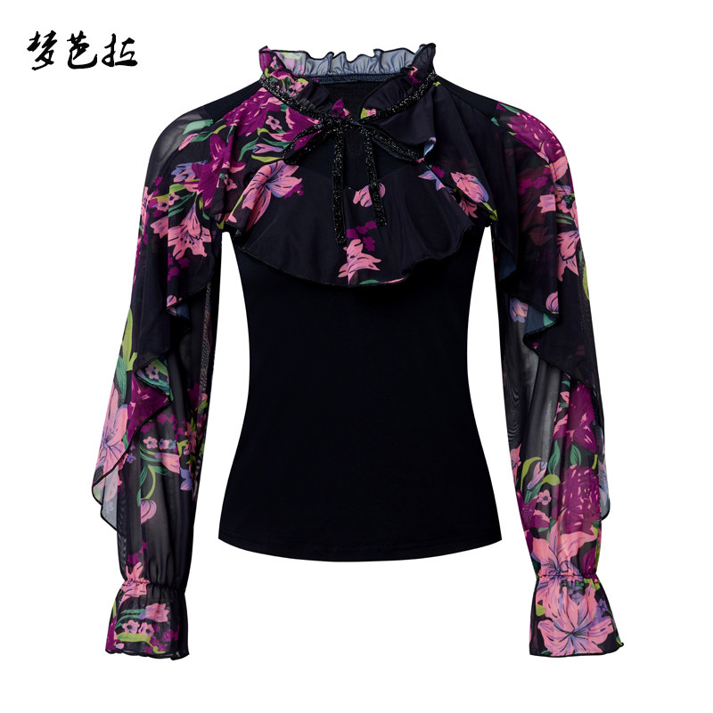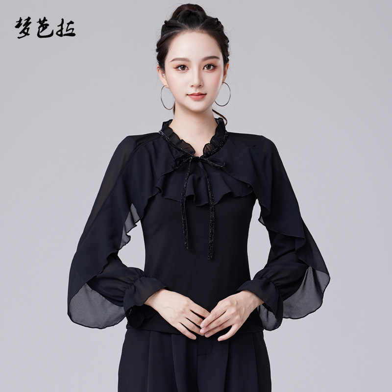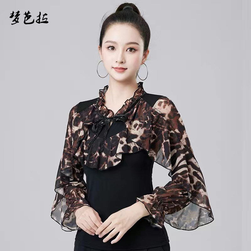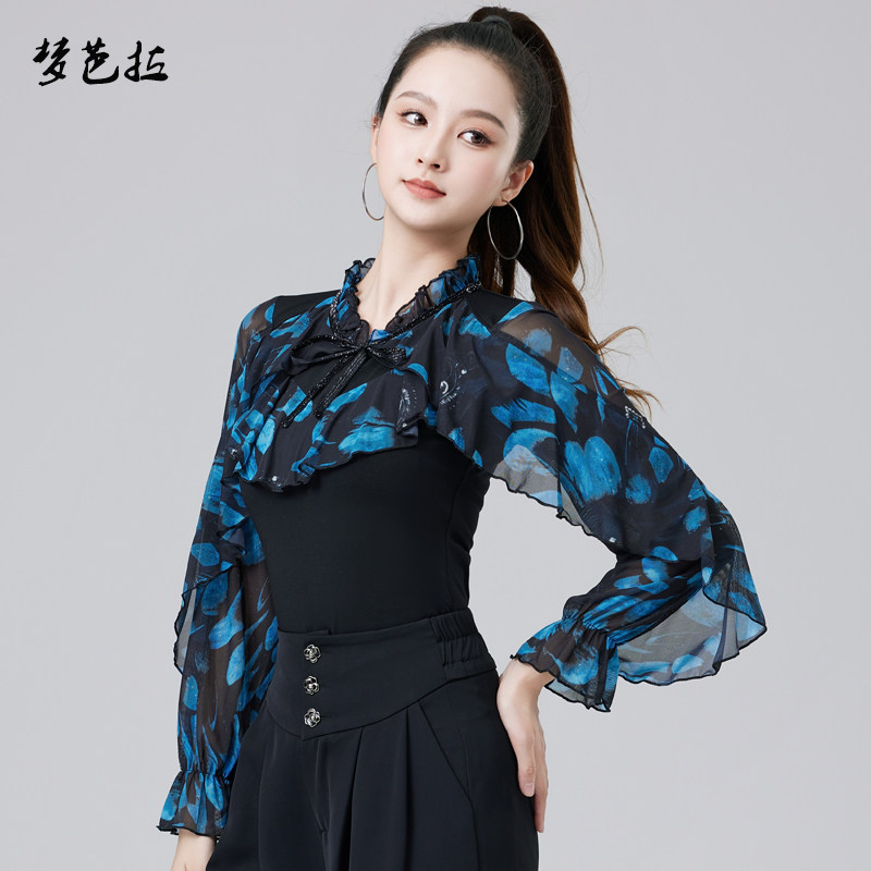 推荐理由:拉丁舞春秋新款长袖印花上衣摩登舞国标练功服广场舞演出服成人女