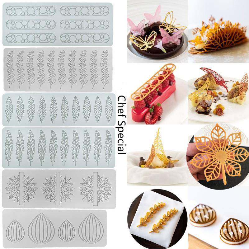 创意法餐分子料理位上前菜摆盘镂空蕾丝点缀树叶模具硅胶西餐脆片