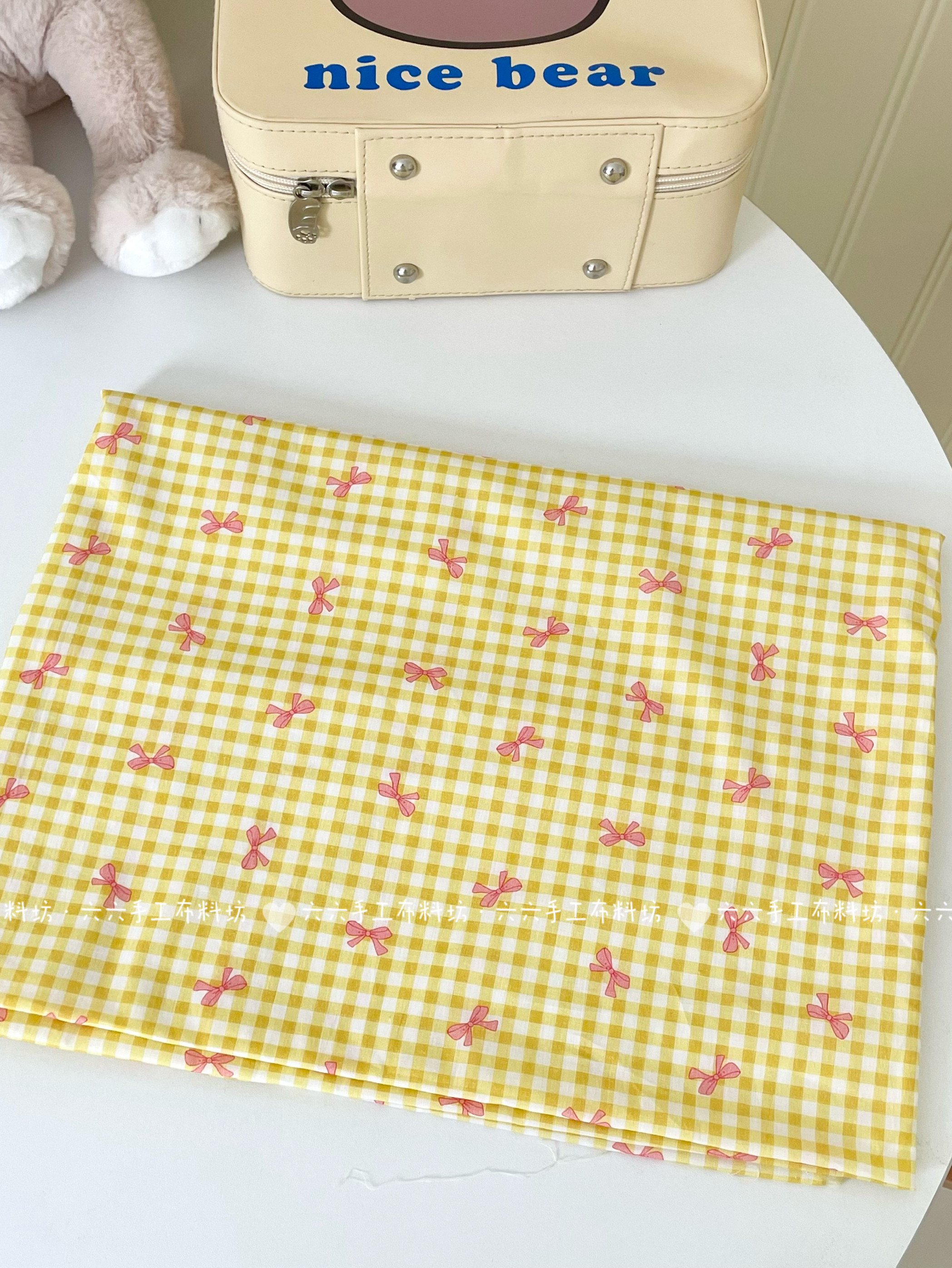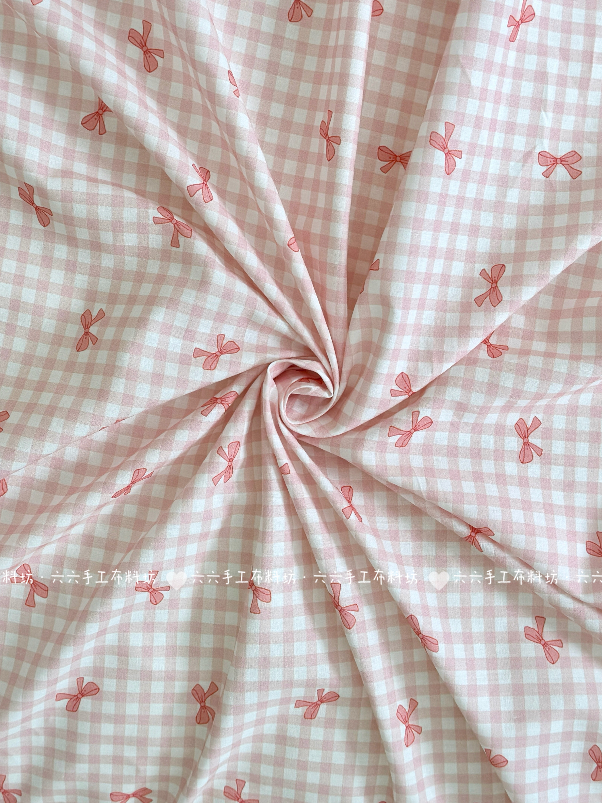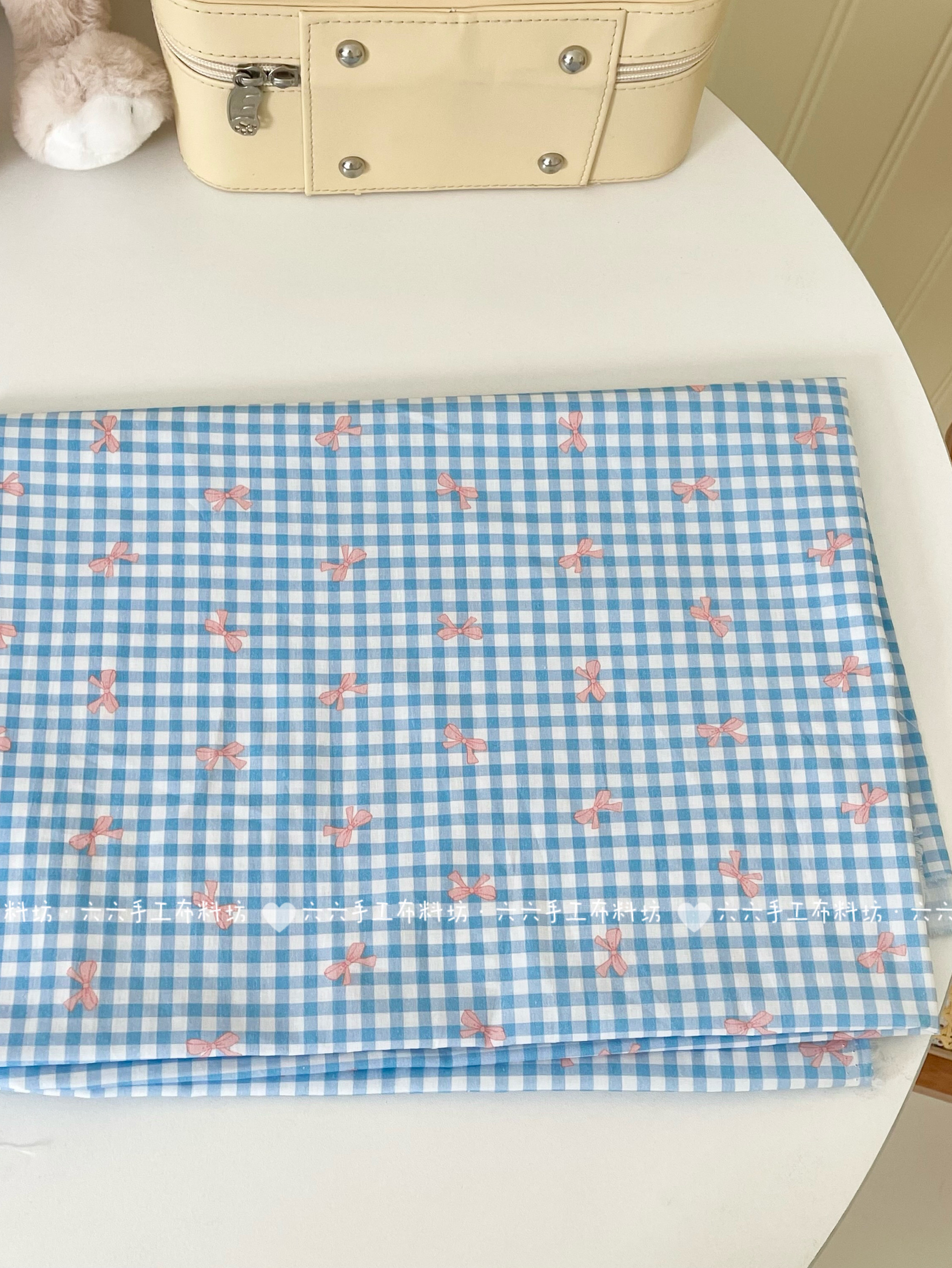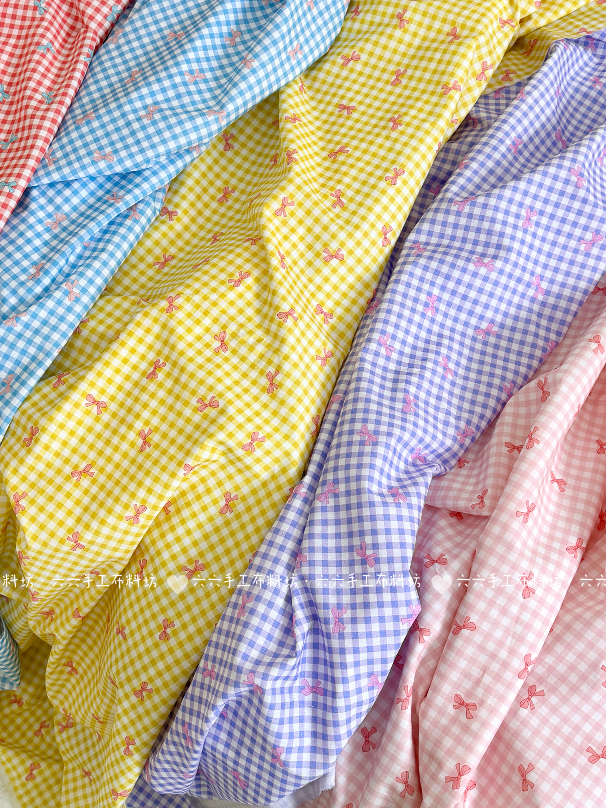 全棉60支印花布料彩色多巴胺格子蝴蝶结面料连衣裙女装童装diy