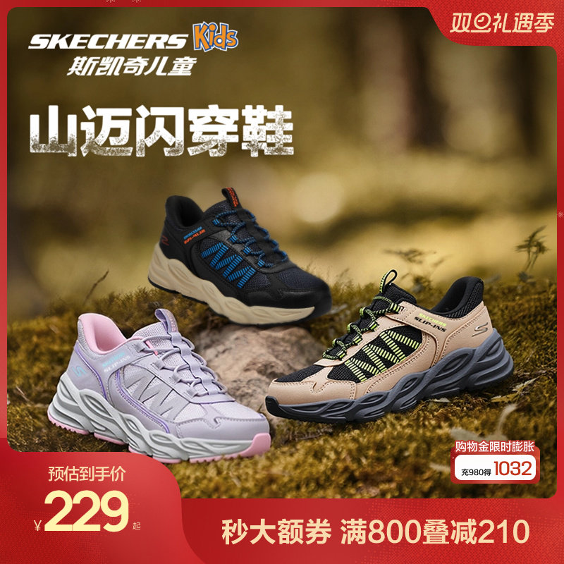 Skechers斯凯奇山迈闪穿鞋秋冬户外童鞋男童防滑徒步鞋轻便运动鞋