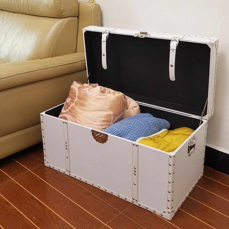 5ZV7特大号收纳箱白色简约欧式茶几箱陈列箱放衣服储物木质皮