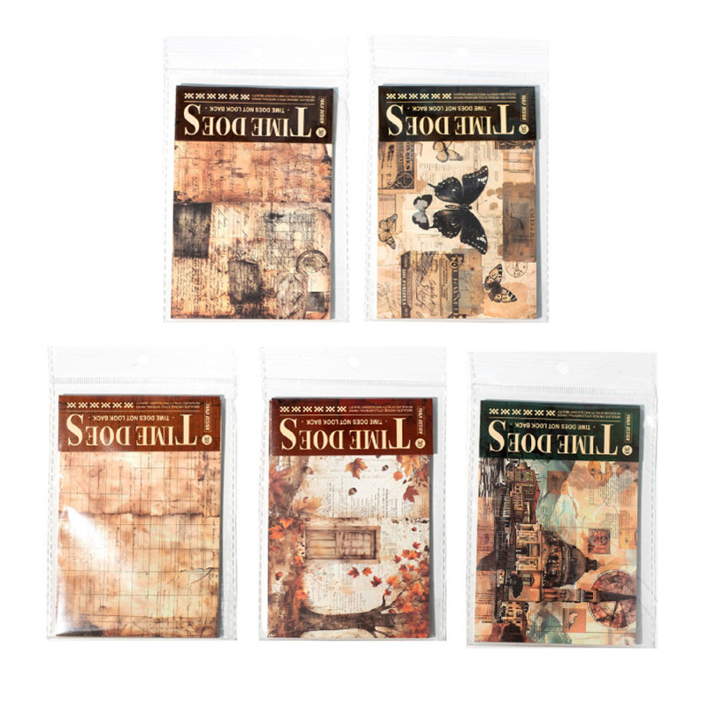推荐理由:M|时光不回首素材纸 复古蝴蝶秋叶船只纹理白牛皮纸30张入无重复