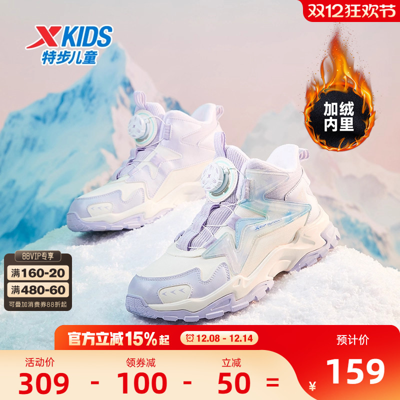 特步儿童鞋冬季新款高帮鞋皮面保暖鞋棉鞋女童冬鞋中大童运动鞋子