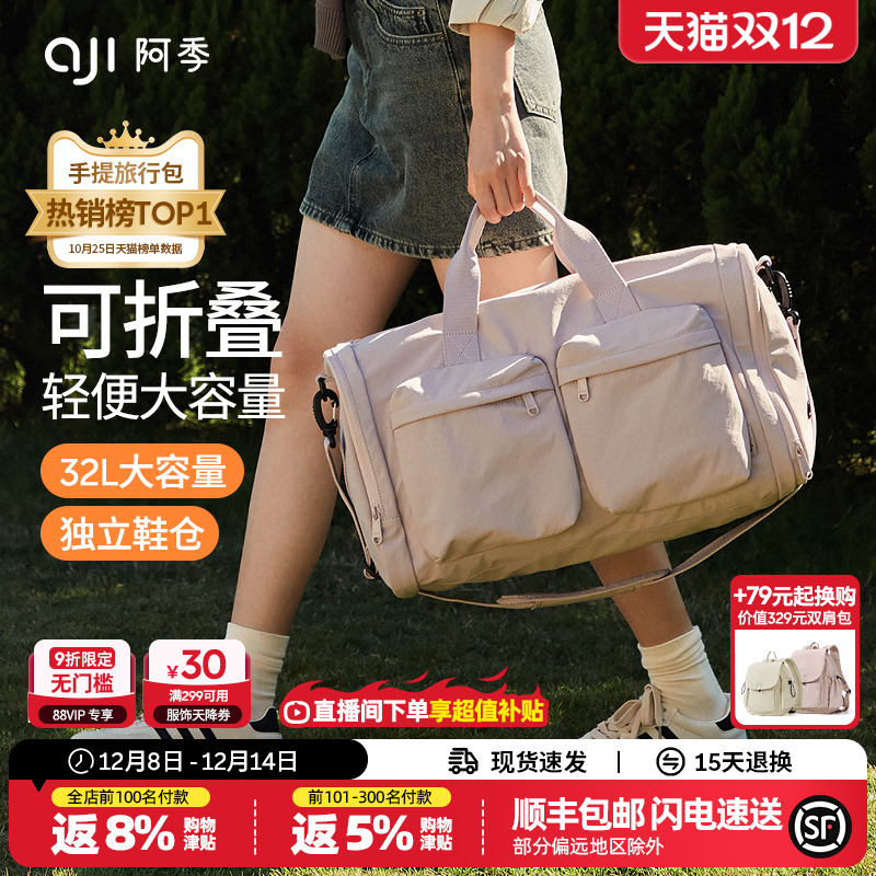 阿季可折叠手提行李袋旅行包女士短途轻便大容量旅游行李箱附加包