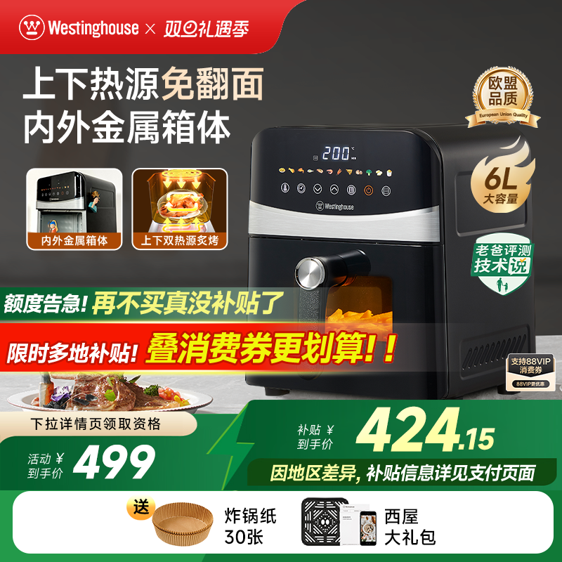 西屋空气炸锅内外金属家用可视6L大容量上下双热源电炸锅烤箱H10