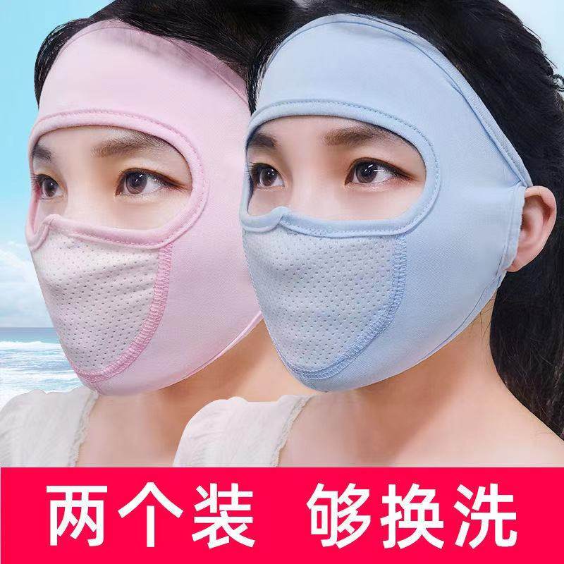 防晒口罩鼻罩女夏季全脸冰丝大护颈防尘透气防紫外线薄款遮脸面罩