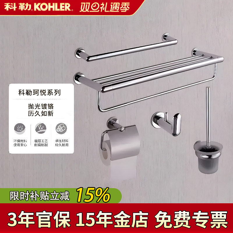 科勒浴巾架毛巾杆挂衣钩马桶刷毛巾环厕纸架珂悦系列浴室挂件套装