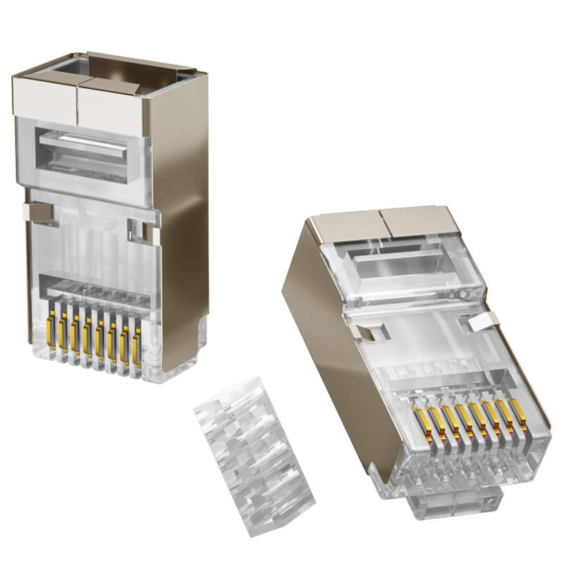 超六类cat6a水晶头非屏蔽网线接头屏蔽两件式CAT6A万兆8P8C网线头