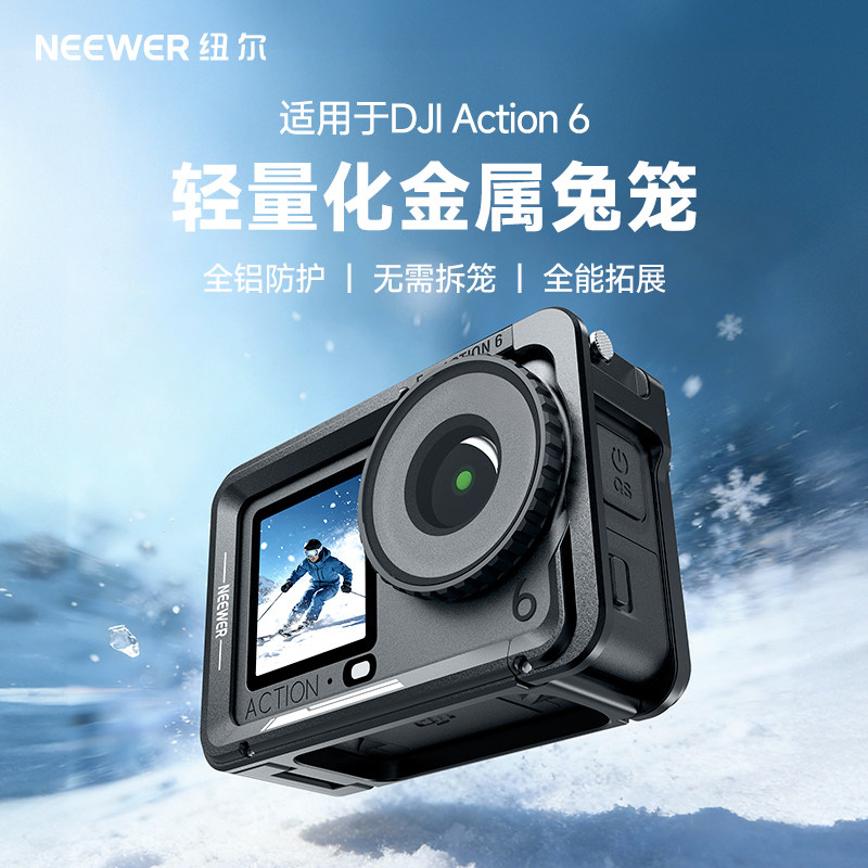NEEWER/纽尔适用DJI大疆ACTION6金属兔笼铝合金边框横竖拍保护壳拓展兔笼运动相机配件磁吸快拆Vlog拍摄街拍