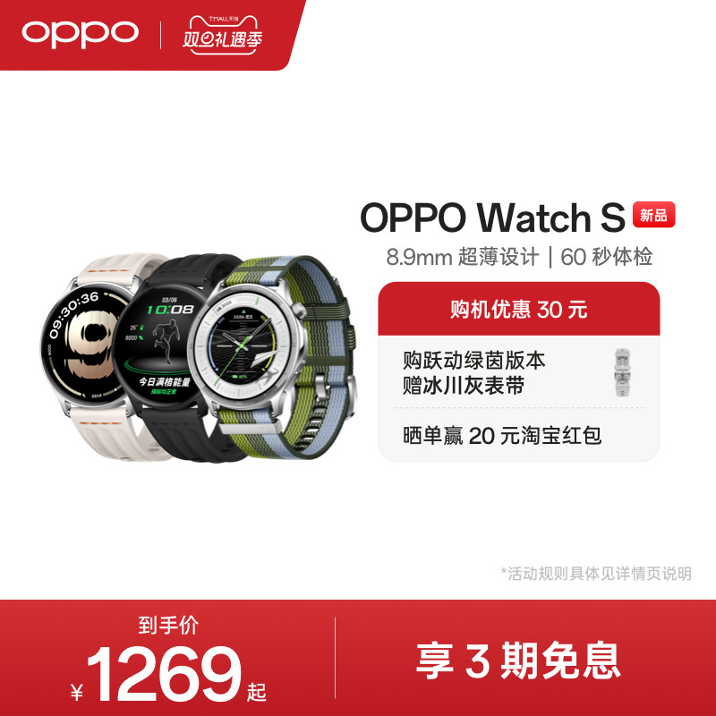 【新品上市】OPPO Watch S 智能手表超薄设计 AI运动教练长续航流体云运动手表新款oppo手表官方正品