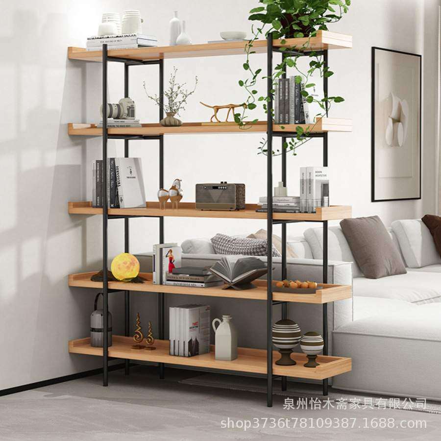 美式创意铁艺实木书架服装店展架办公室家用置物架落地茶室博古架