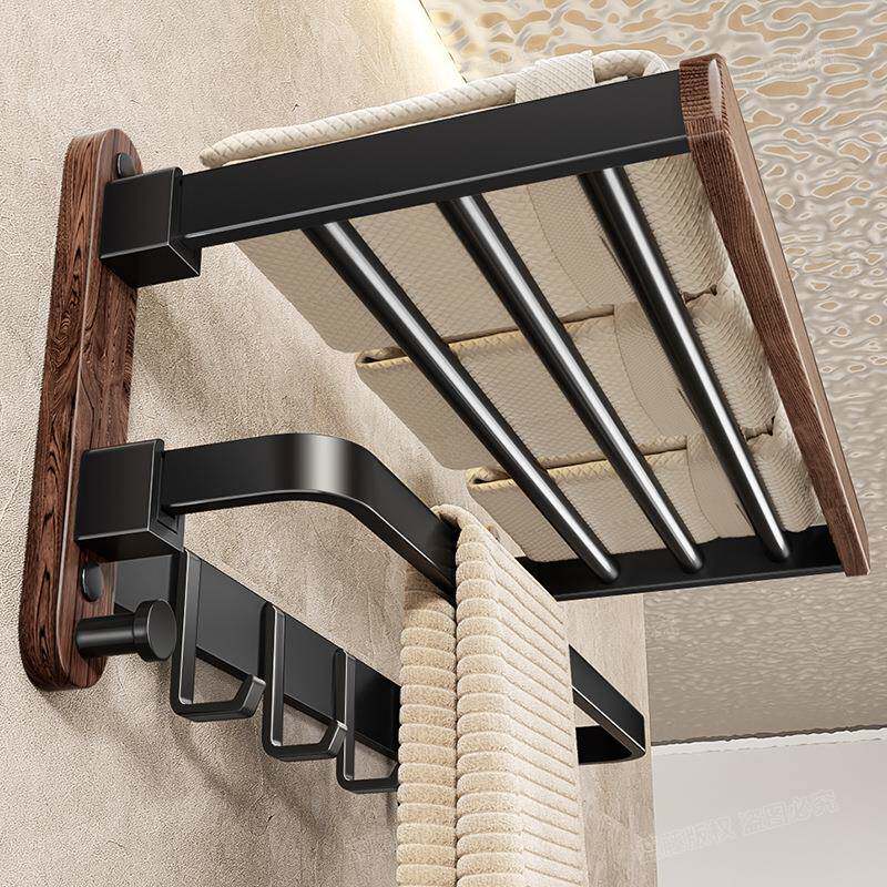 卫生胡间桃木浴巾置物架免155打孔浴墙上壁洗手间一体毛巾挂收纳