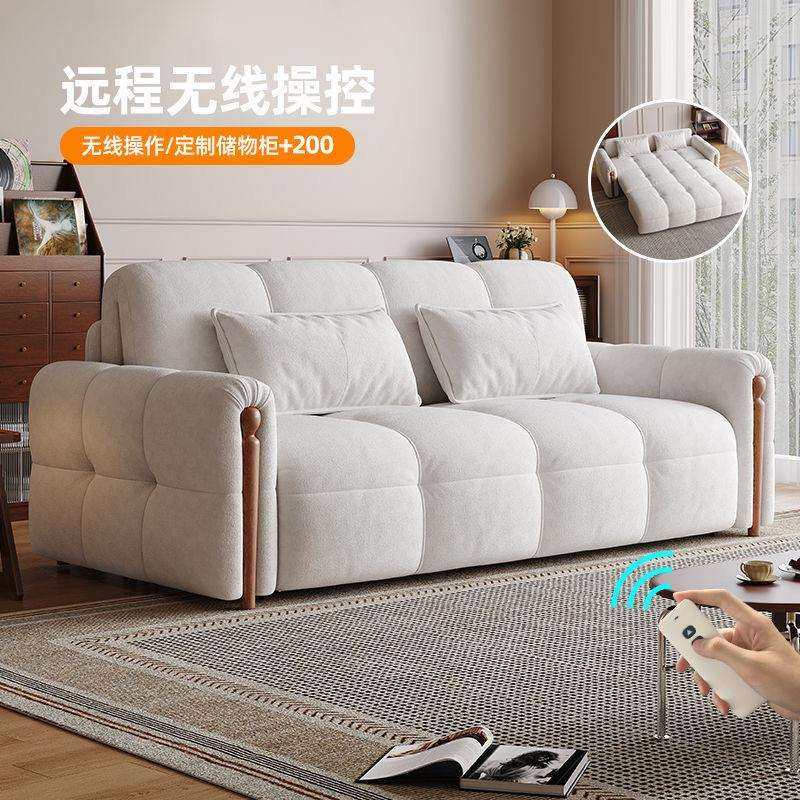 智能电动遥控沙发床雪花绒布两用可折叠客厅卧室书房单双人沙发床