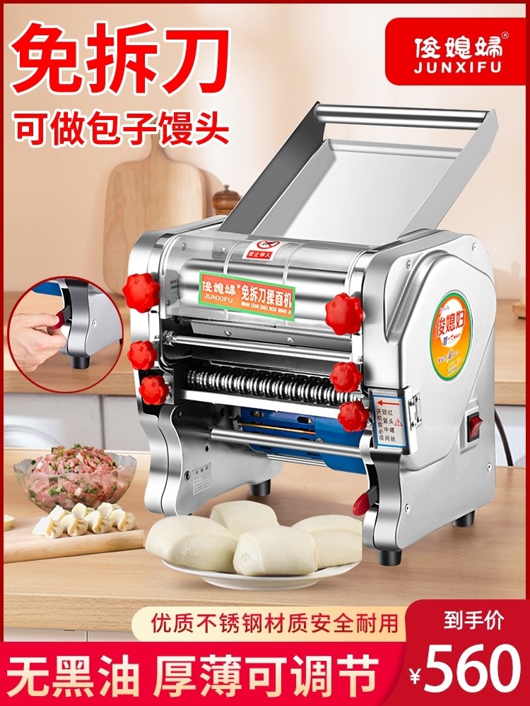 推荐理由:俊媳妇小型家用压面机不锈钢电动免拆刀商用馄饨饺子皮切揉面条机