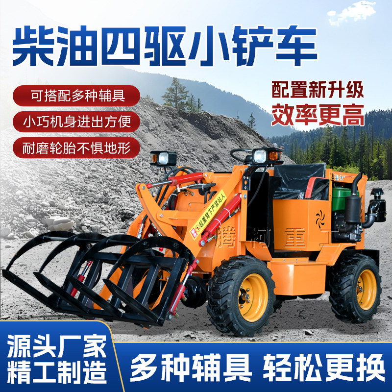 电动小铲车装载机四驱小型建推土机筑工程沙场柴油工地农用抓草机