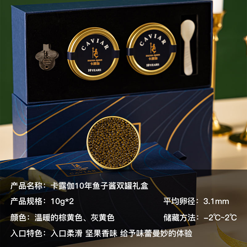 卡露伽臻享系列10年俄罗斯鲟鱼子酱年双罐礼盒caviar高端家宴必选