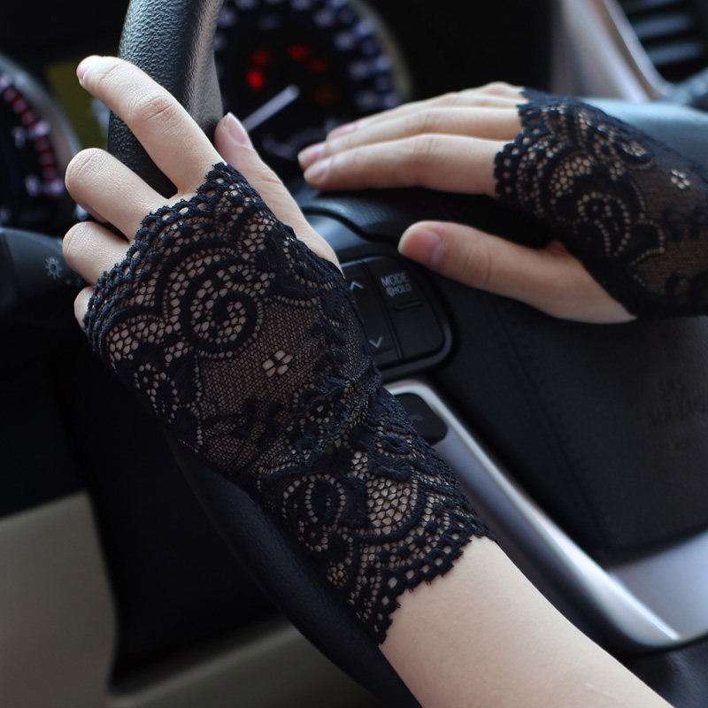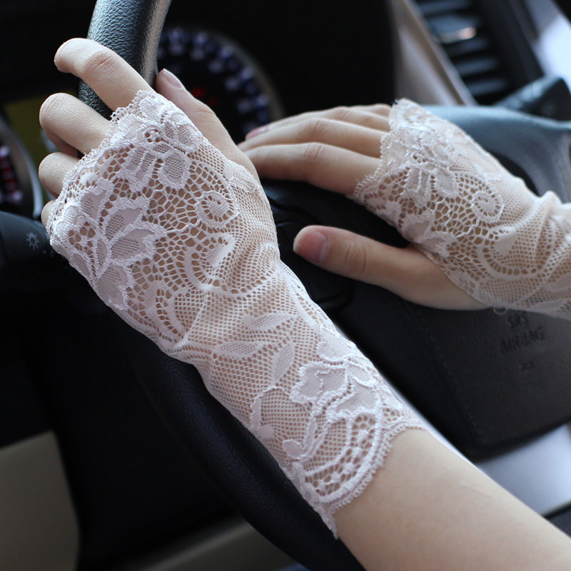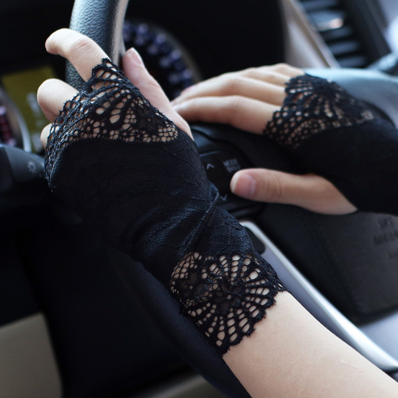 蕾丝护手防晒手套女夏薄款半指开车骑行遮疤痕装饰透气练瑜伽触屏