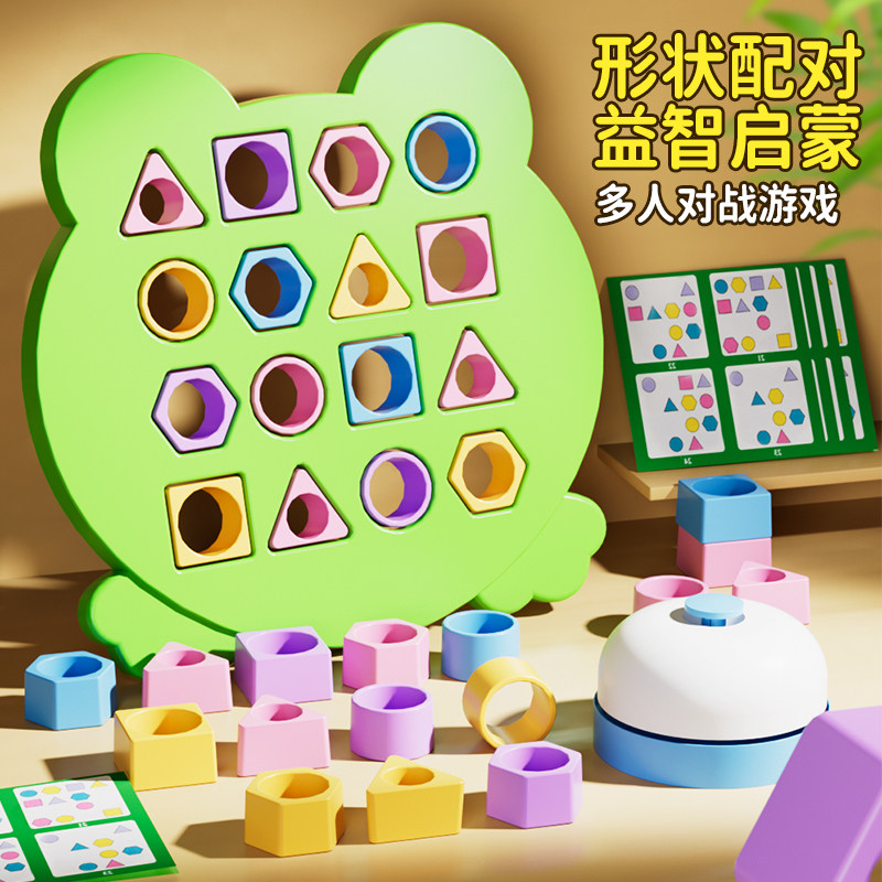 青蛙形状配对亲子对战几何形状配对思维训练色彩认知儿童益智玩具