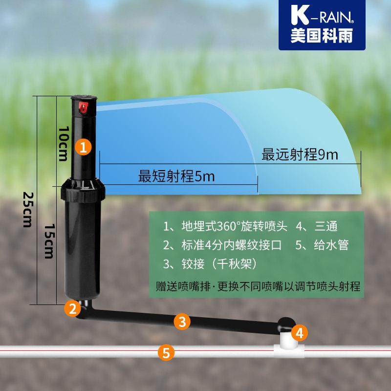 推荐理由:美国科雨K1地埋自动喷灌园林浇水草坪喷头360度旋转屋顶降温喷水