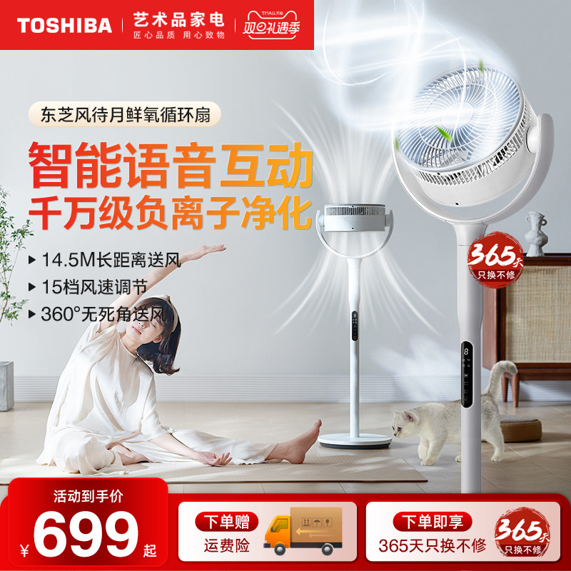 东芝风待月空气循环扇家用智能语音遥控大风力卧室落地扇轻音风扇
