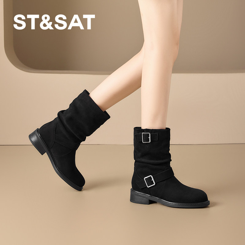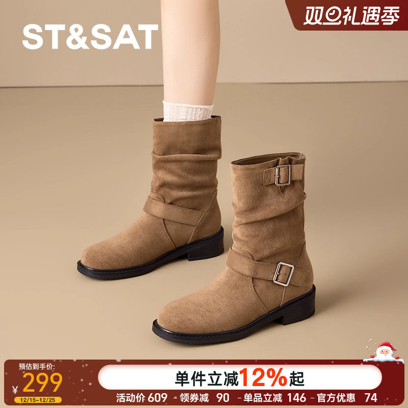 星期六西部骑士靴女短靴法式美德拉厚底堆堆弹力靴单靴袜靴瘦瘦靴