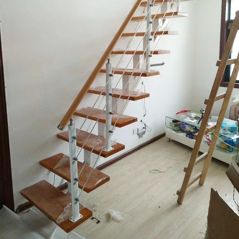 整体钢木楼梯室内复式阁楼跃层简约现代斜梁直梁公寓自建loft定制