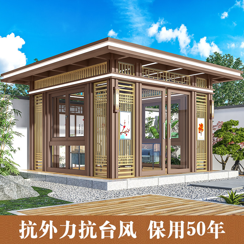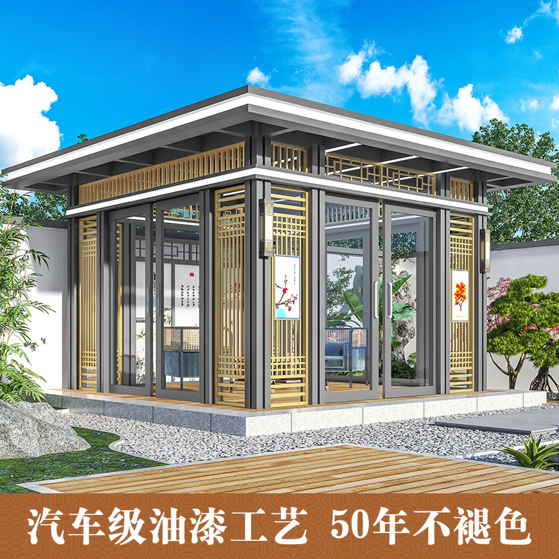 光标凉亭户外庭院铝合金阳光房新中式凉亭全封闭茶室定制四角凉亭