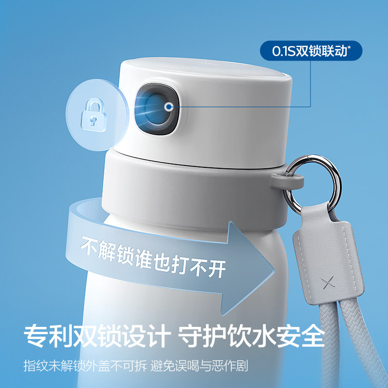飞利浦新安怡智能指纹解锁保温杯儿童学生上学专用密码水杯吸管杯