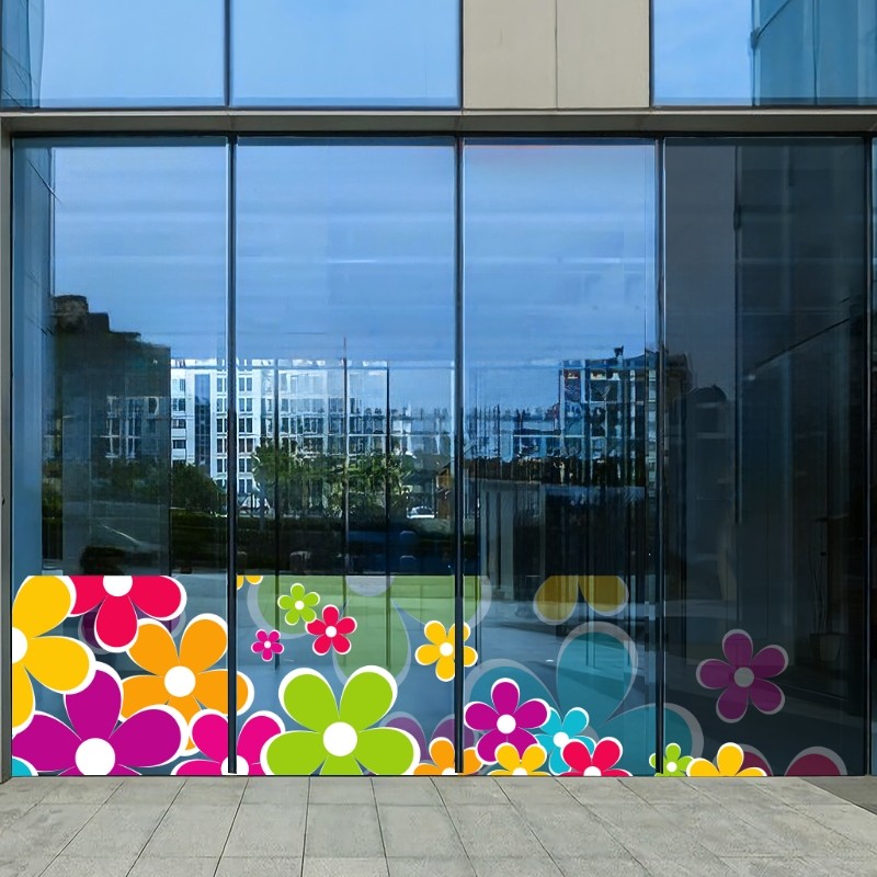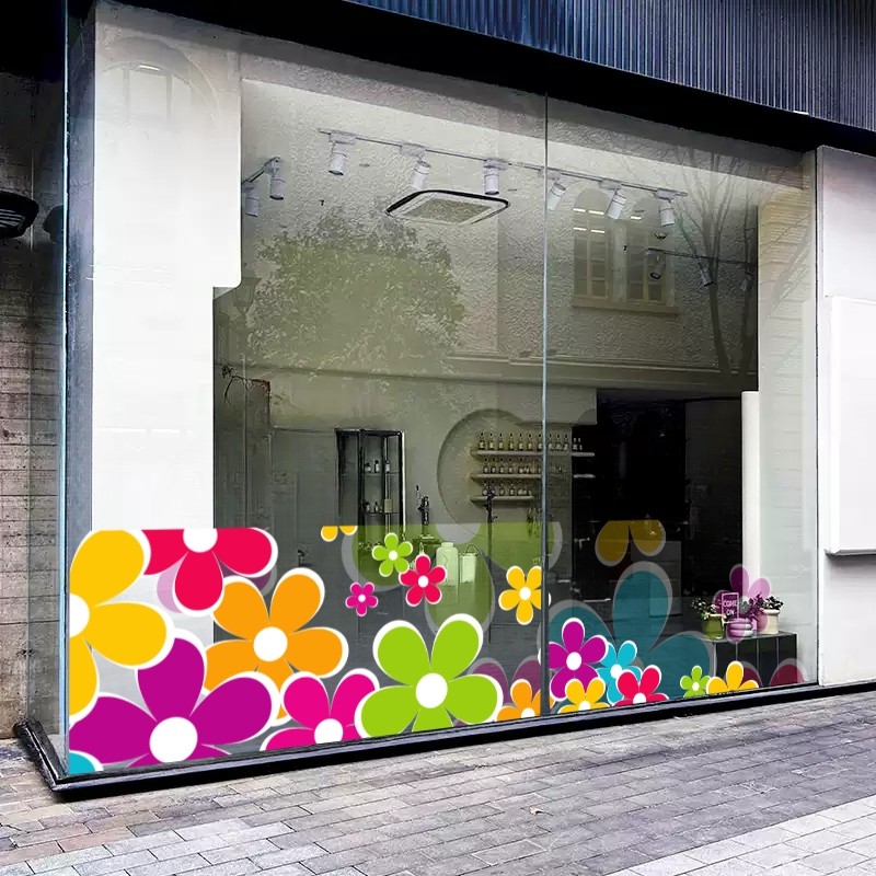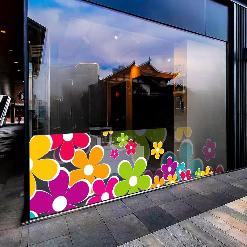 简约多彩花朵腰线商场超市服装店珠宝店饰品店等橱窗门窗玻璃贴纸
