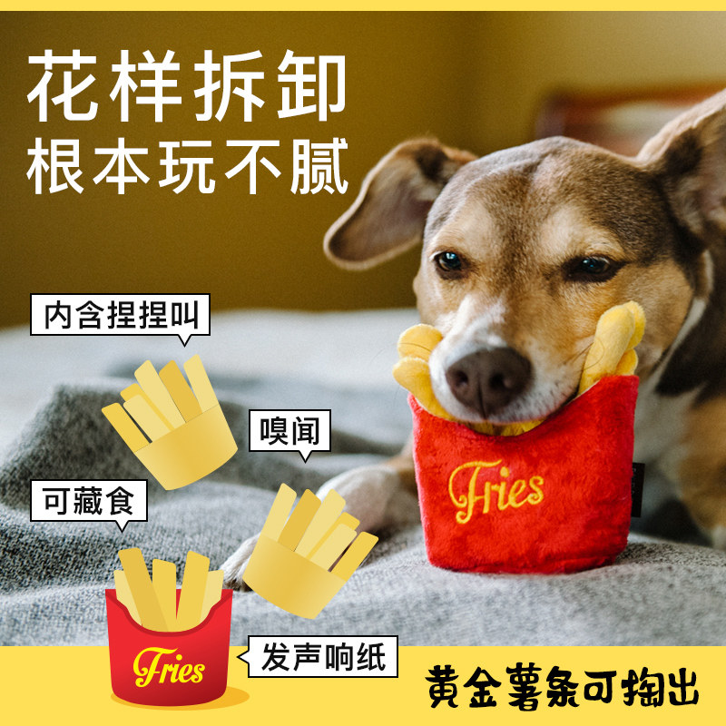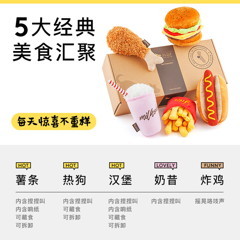 【经典美食】PLAY宠物狗毛绒发声藏食丰容玩具自嗨解闷炸鸡汉堡