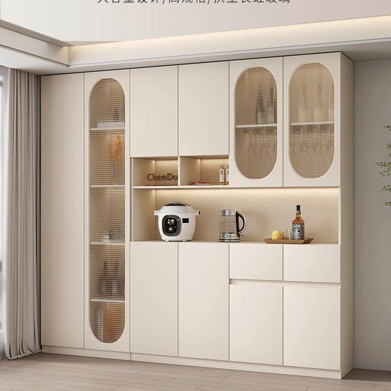 居知木奶油风餐边柜高柜靠墙一体置物架客厅展示柜现代简约酒柜
